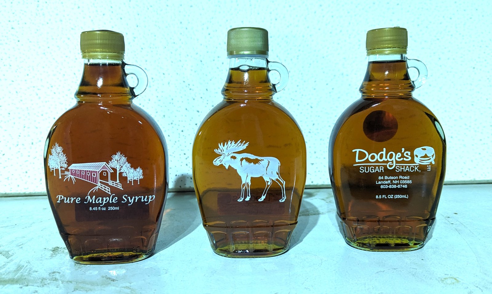 • 8.5 oz flask bottle: Covered Bridge, Moose, Dodge’s Sugar Shack Brand – $10.00